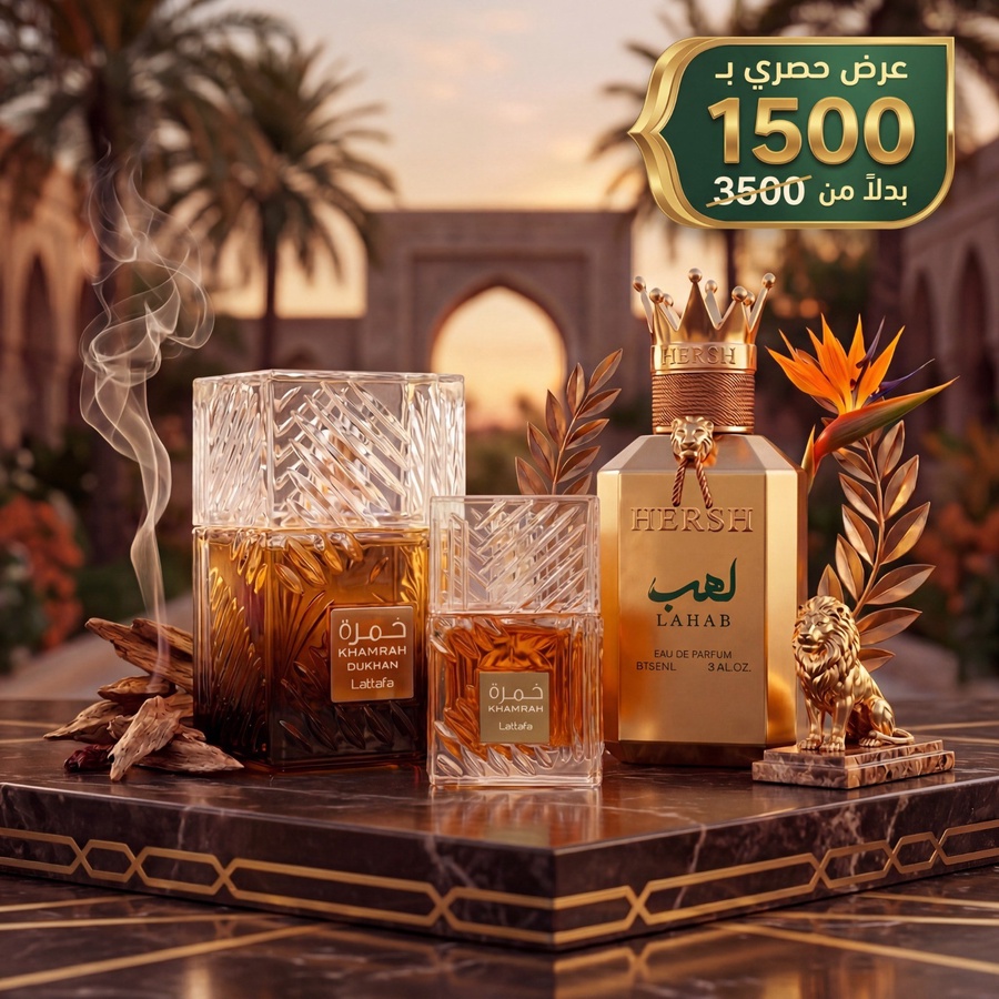 عرض الملوك: 3 عطور عربية فاخرة (هيرش لهب + خمرة دخان + خمرة 30 مل) بسعر 1500 جنيه بدل 3500 مع توصيل مجاني لفترة محدودة